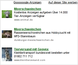 Um Verwirrung bei den Nutzern zu vermeiden, dürfen Google-Anzeigen oder -Suchfelder nicht auf Websites mit anderen Anzeigen oder Services veröffentlicht werden, die dasselbe Layout und dieselben Farben wie Google-Anzeigen oder -Suchfelder verwenden. Auf Ihrer Website dürfen Sie zwar eigene Anzeigen verkaufen, müssen jedoch dabei sicherstellen, dass diese Anzeigen keinesfalls wie Imitationen von Google-Anzeigen aussehen.